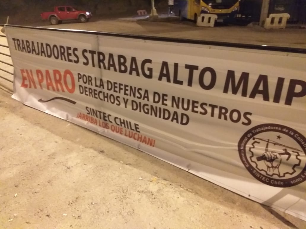 2- En consideración de esto, durante el día de ayer 29 de septiembre de 2019, los trabajadores del Proyecto Hidroeléctrico Alto Maipo, empresa STRABAG, comenzamos una paralización indefinida de las faenas, teniendo en cuenta además el comunicado difundido por la empresa en el que da por finalizado unilateralmente el diálogo con nuestro sindicato.