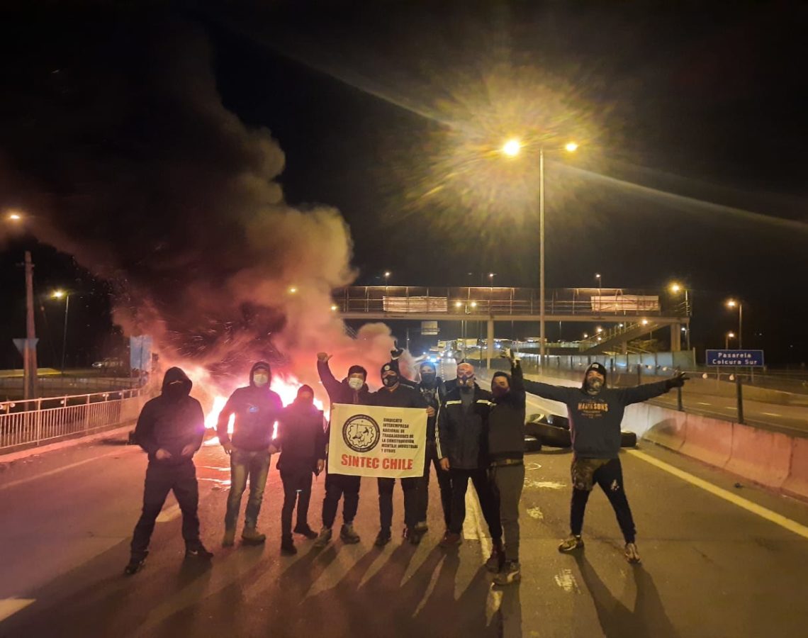 Durante esta madrugada trabajadores y delegados sindicales del SINTEC-Chile y UFEMICH, de varias empresas del Proyecto MAPA en Arauco –SigdoKoppers, Vial y Vides DSD y Echeverria Izquierdo-, se manifestaron cortando la ruta 160 y colgando lienzos en medio de un conflictivo clima laboral. La manifestación se debe a que hoy se presentó el petitorio interempresa unificado de los dos sindicatos, pero también exigiendo el tercer retiro sin letra chicha del 10% de los fondos de la AFP y además, porque dirigentes de ambas organizaciones han sido amenazados por sicarios del SINAMI, una organización sindical pro-patronal, provistos de armas de fuego en sus propios hogares, ante lo cual las empresas hacen vista gorda. Al finalizar la movilización, nuevamente una patota pro empresa, compuesta por miembros del SINAMI hizo su aparición provistos de fierros, pistolas y armas blancas y agredió a los manifestantes, bajo la complicidad de Carabineros quienes observaron todo sin entrometerse.